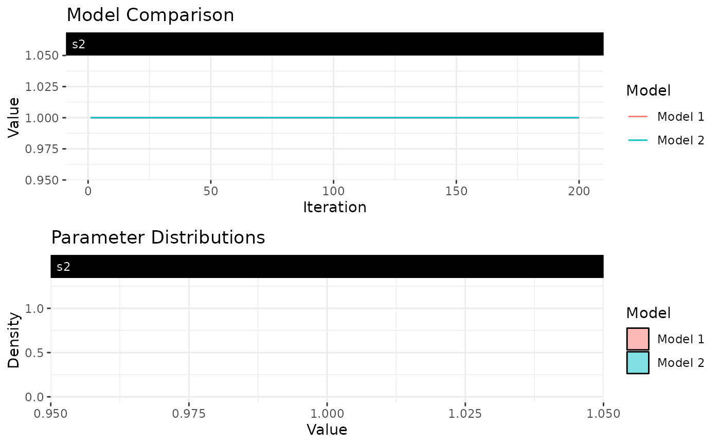Creates side-by-side trace plots of scalar variance parameters from two or more fitted DBN models. Useful for comparing convergence behavior across different model specifications (e.g., static vs. dynamic, different ranks, different families).