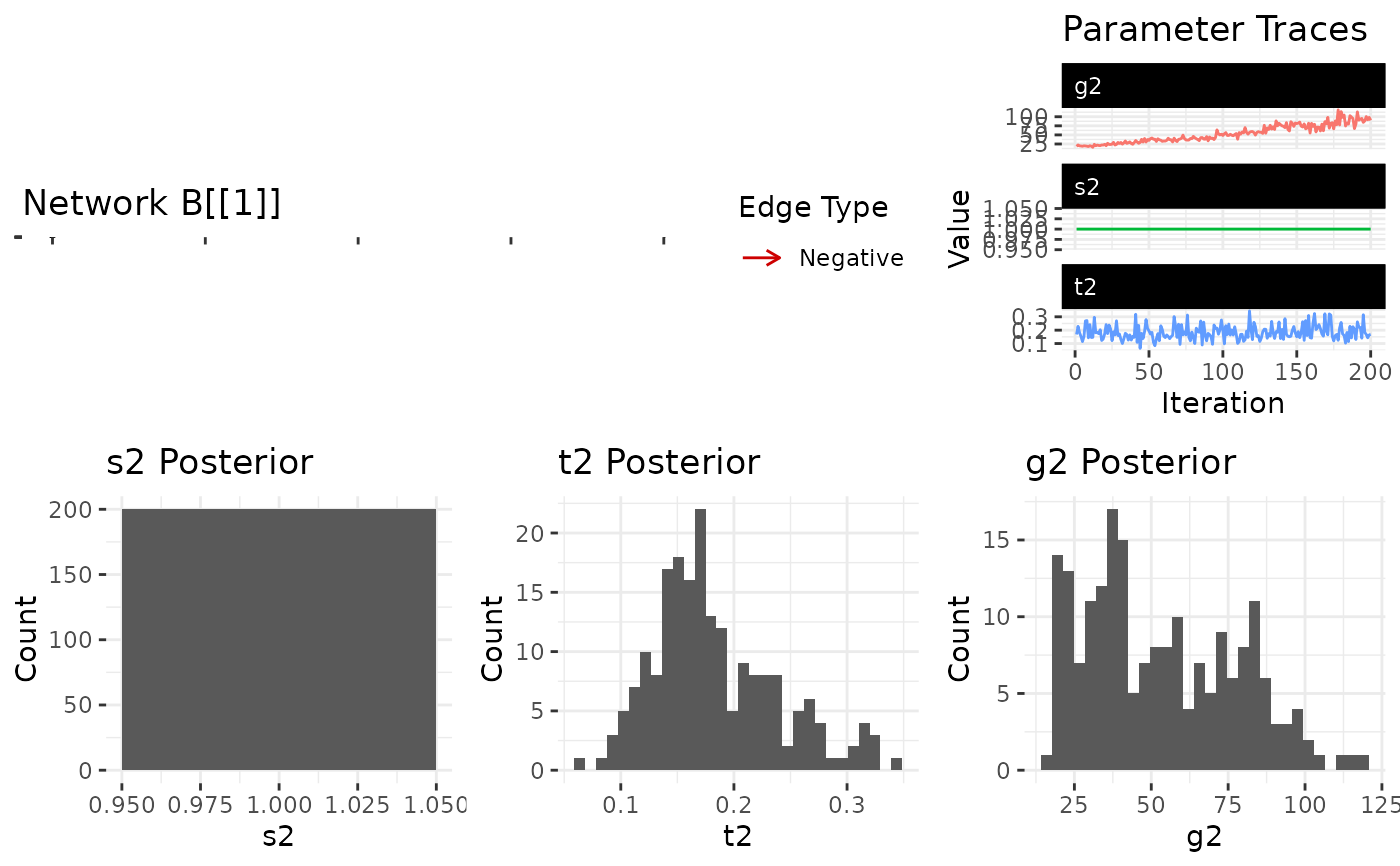 fit <- dbn(sim$Y, model = "static", nscan = 200, burn = 100, verbose = FALSE)