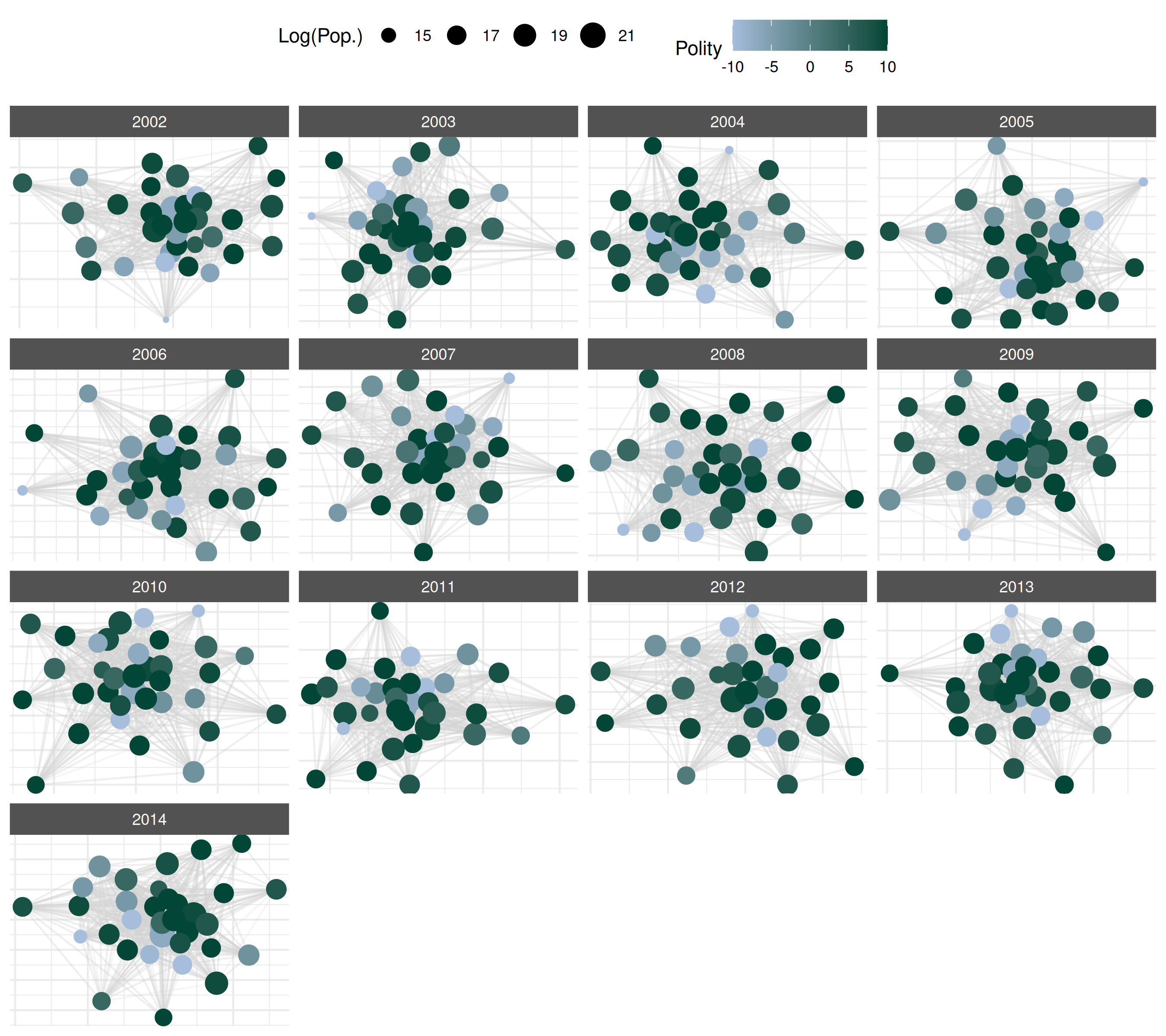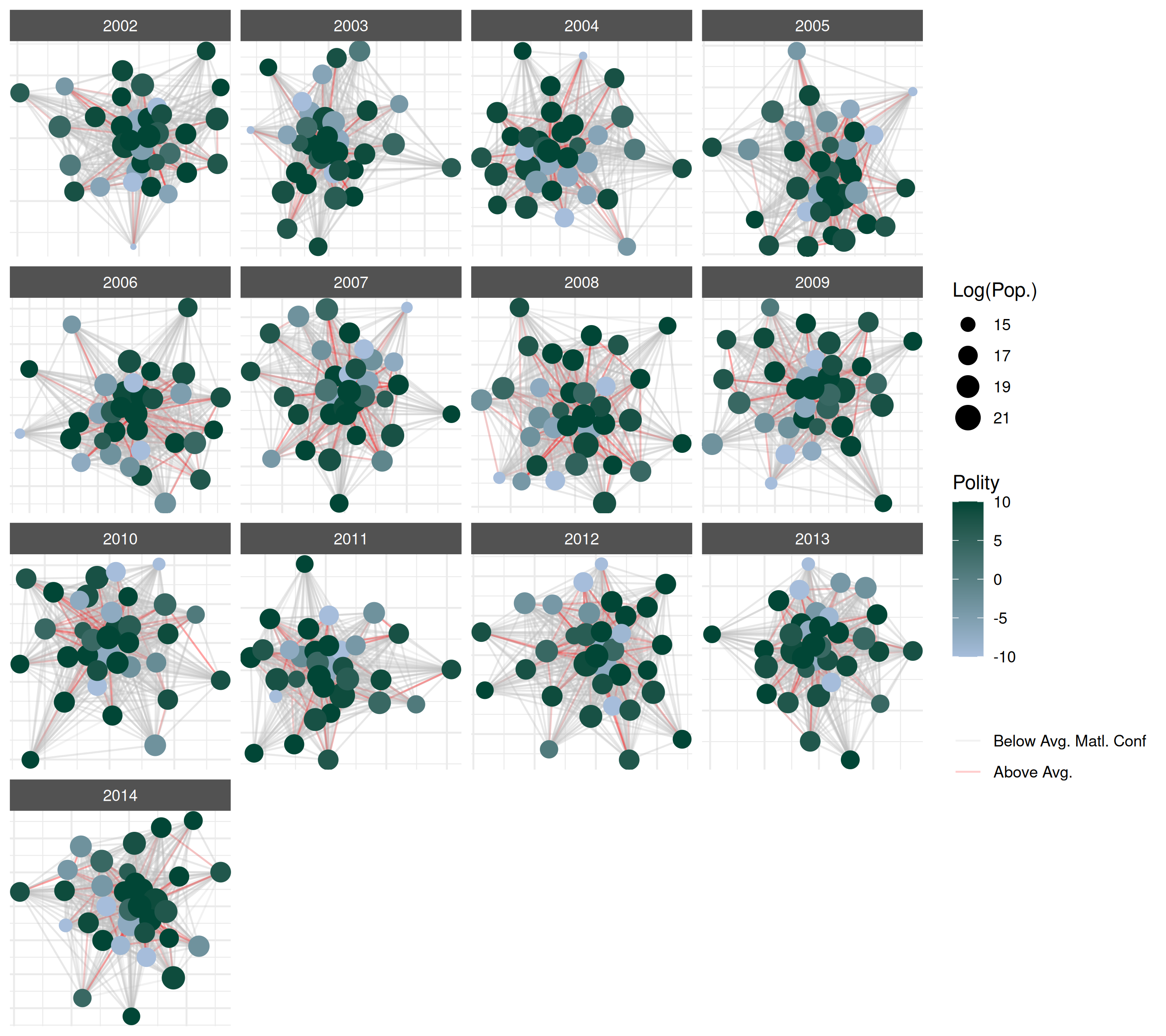 nodal attributes in the network (population size and polity score). Now,